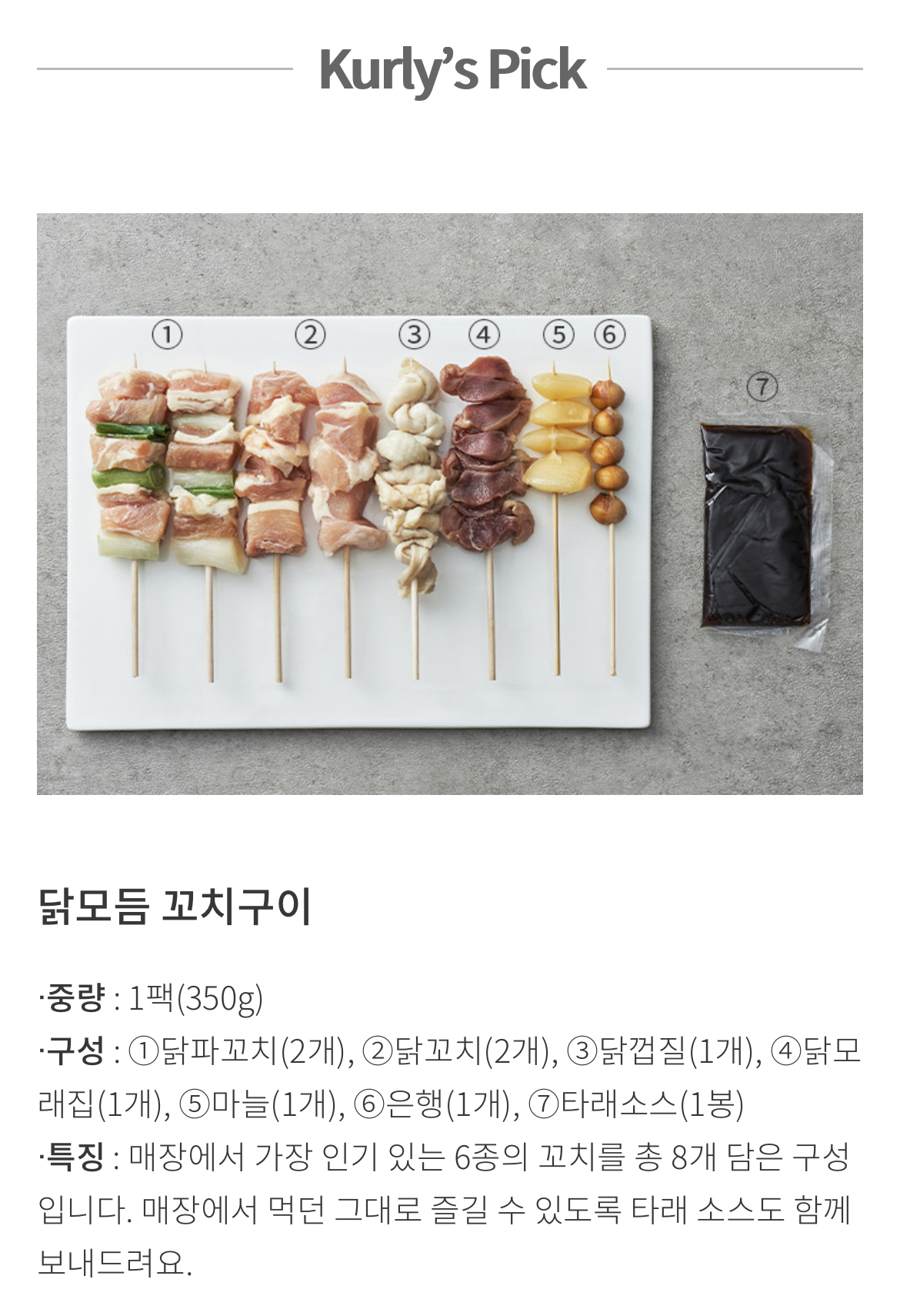 꼬치구이는 모두 냉동상태로 되어있기 때문에 살짝 해동하신 뒤 조리하시는 걸 추천드립니다.