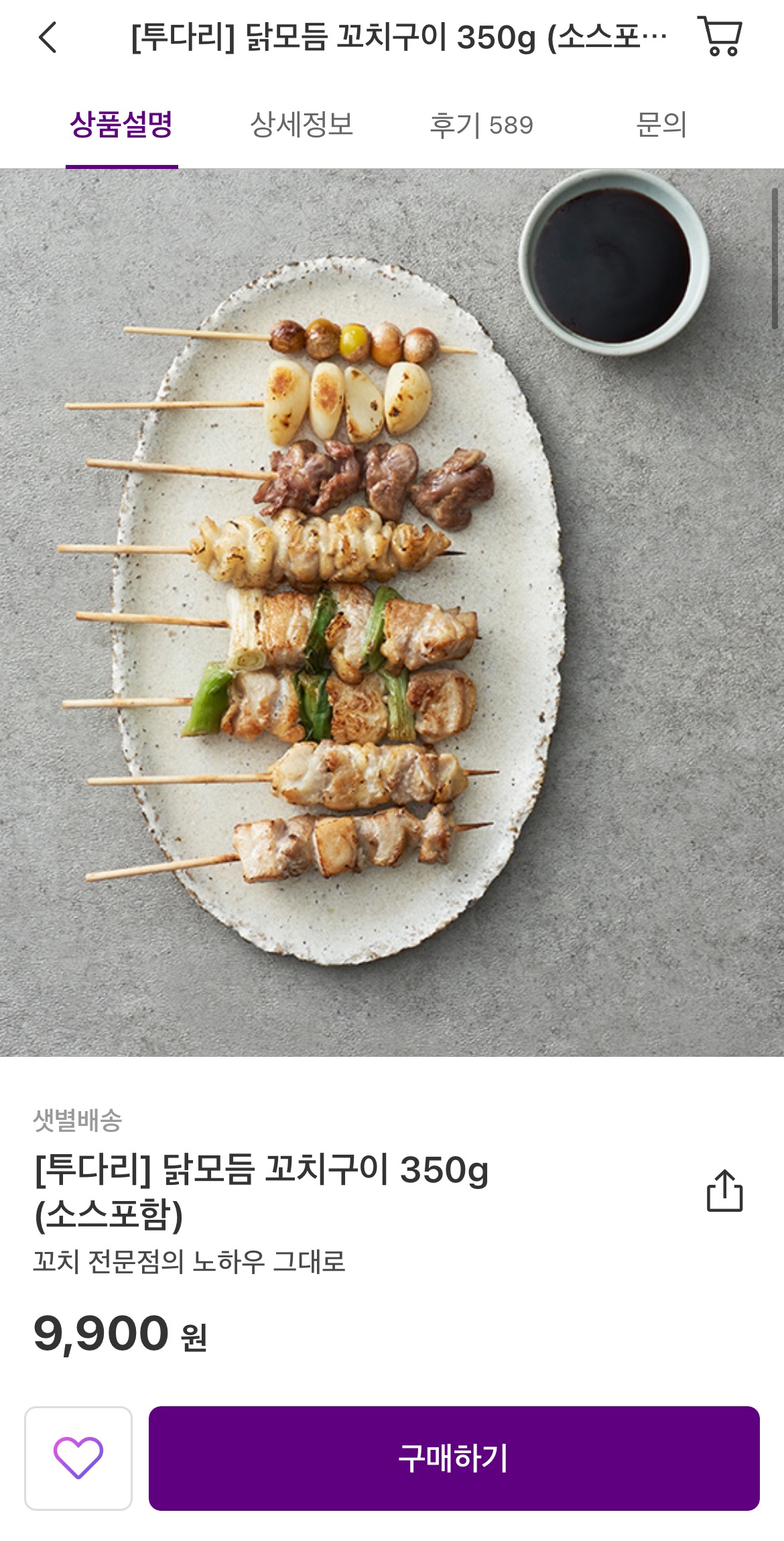 제품명 : 투다리 닭모둠 꼬치구이 350g (소스포함)