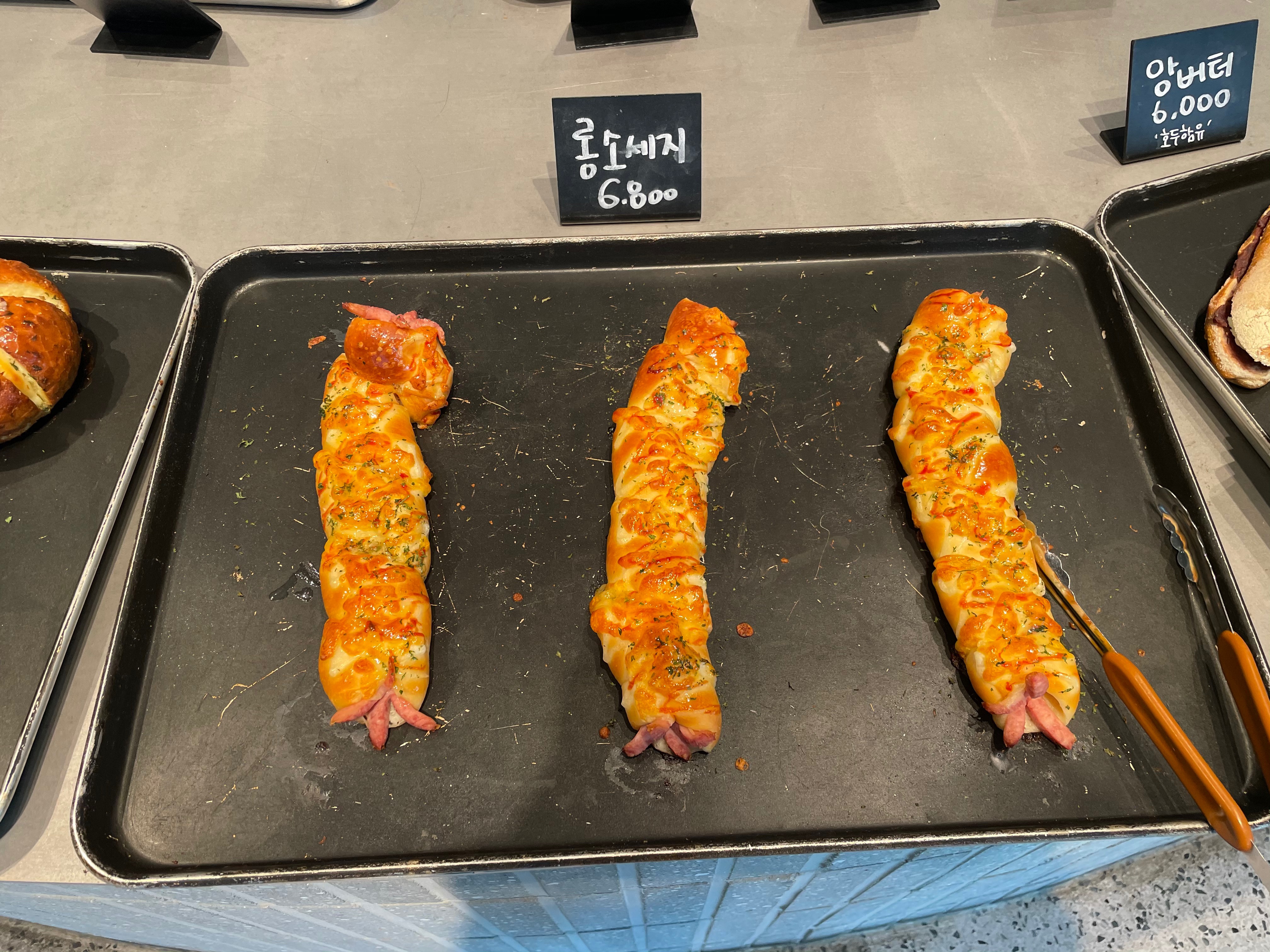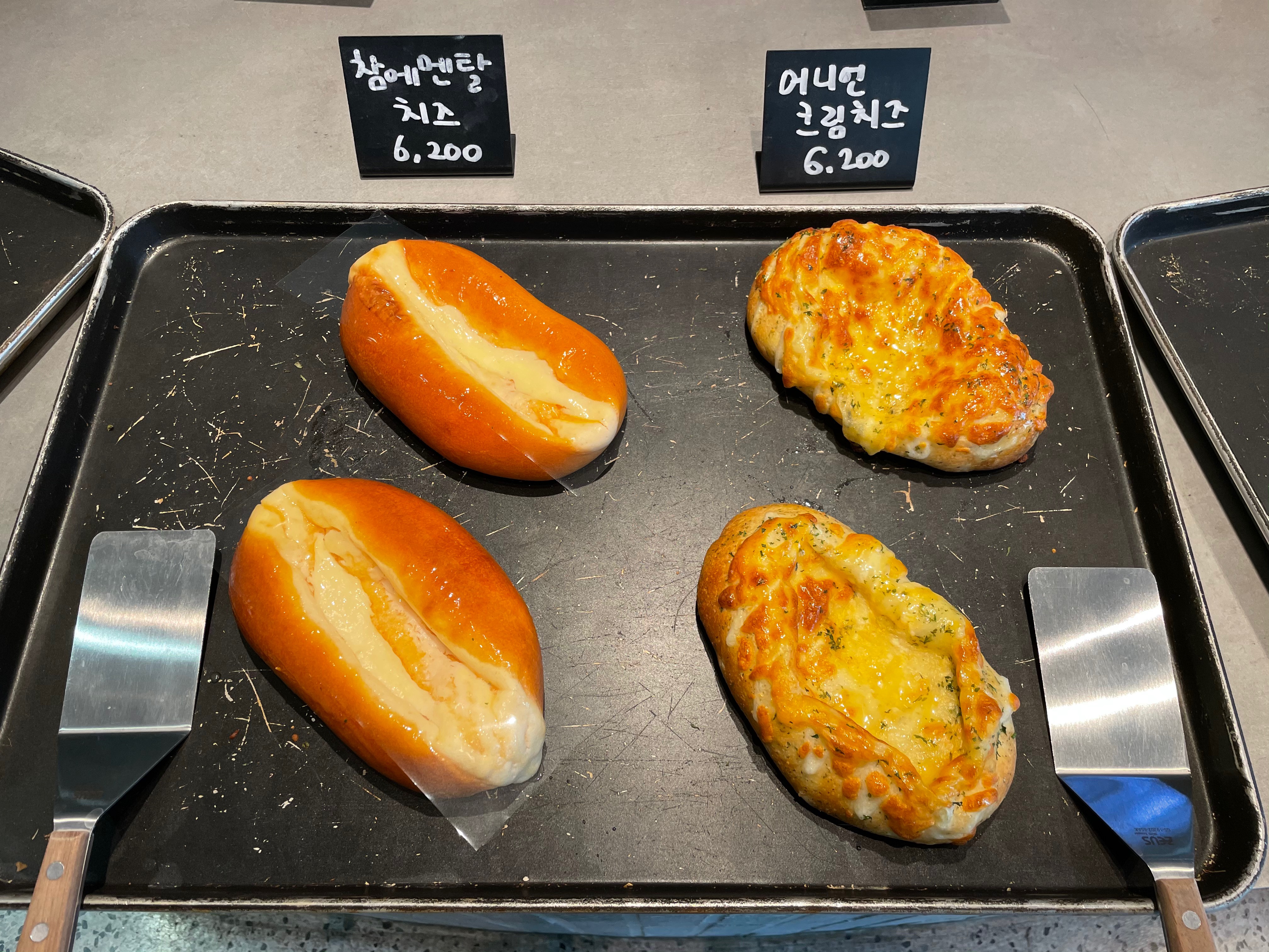 오픈하자마자 갔음에도 갓 나온 빵들이 빈틈없이 예쁘게 줄 서 있었습니다.