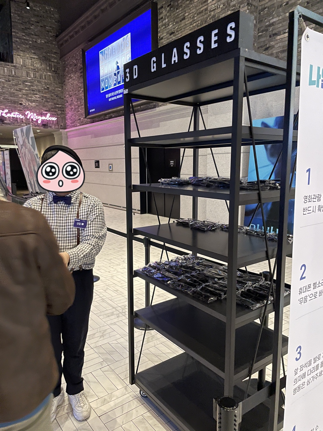 직원을 통해 티켓을 확인하고 그자리에서 3D안경을 받는 형식이며,