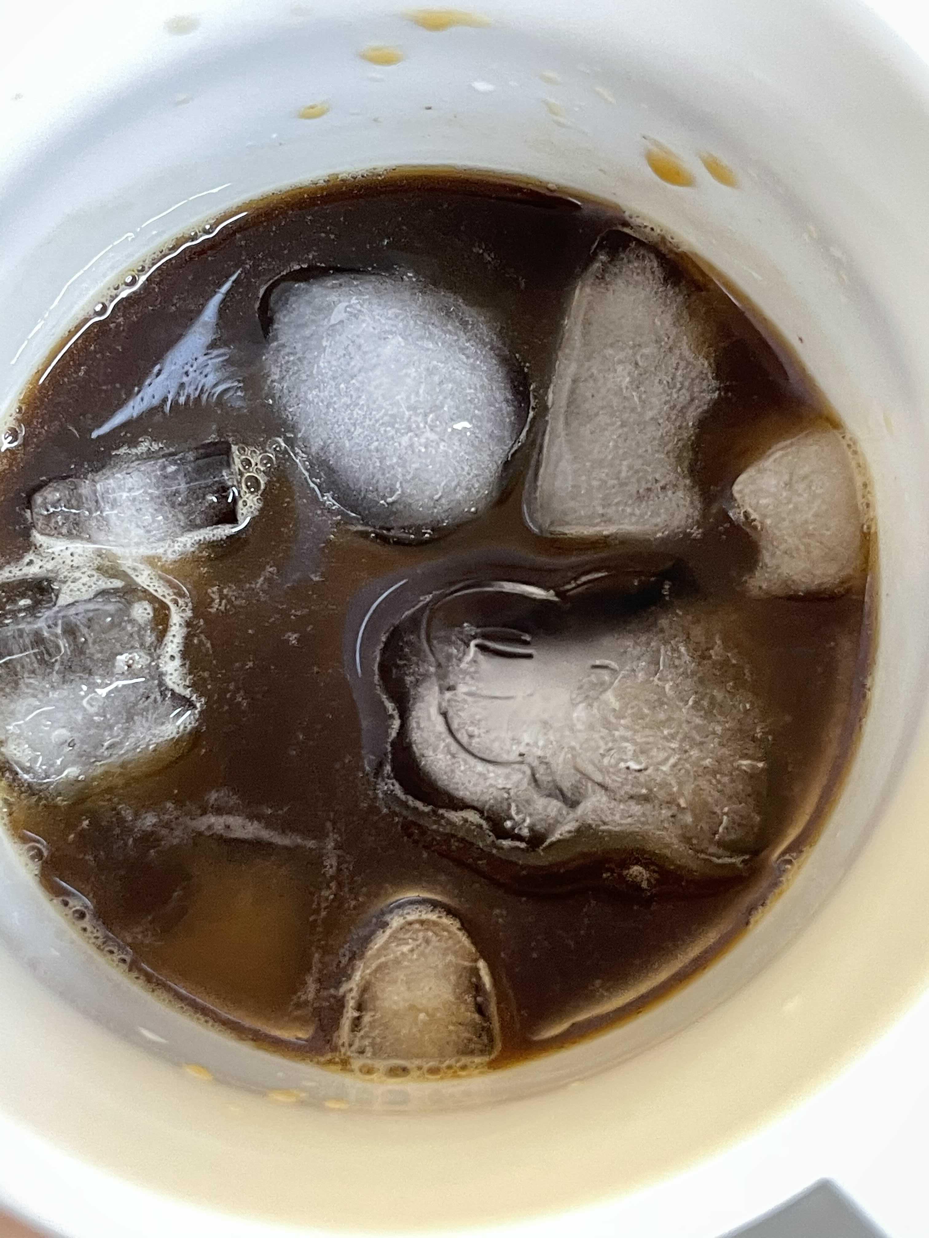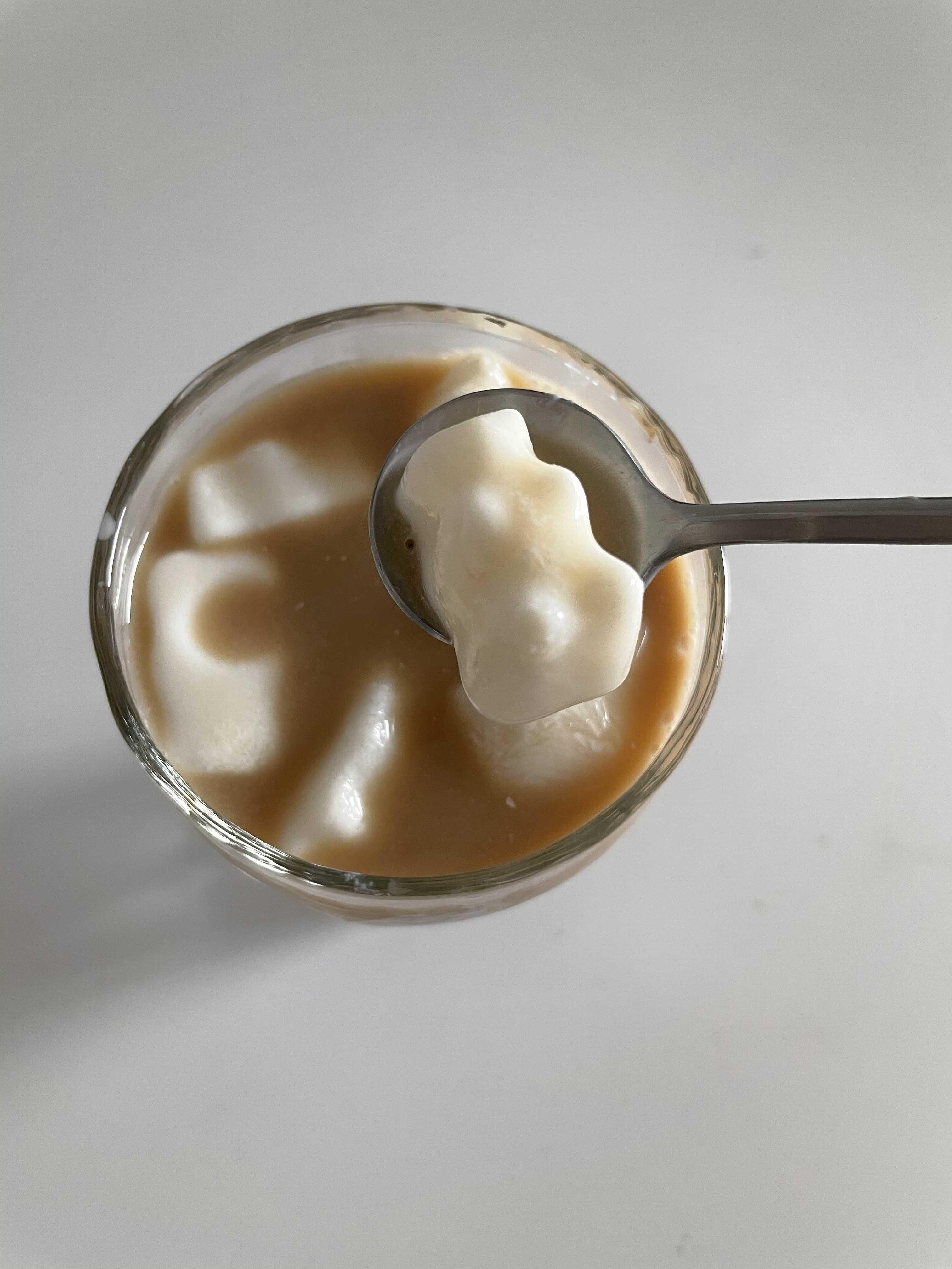 커피를 얼린 얼음의 진가는 우유에 넣었을 때 드러났습니다.
