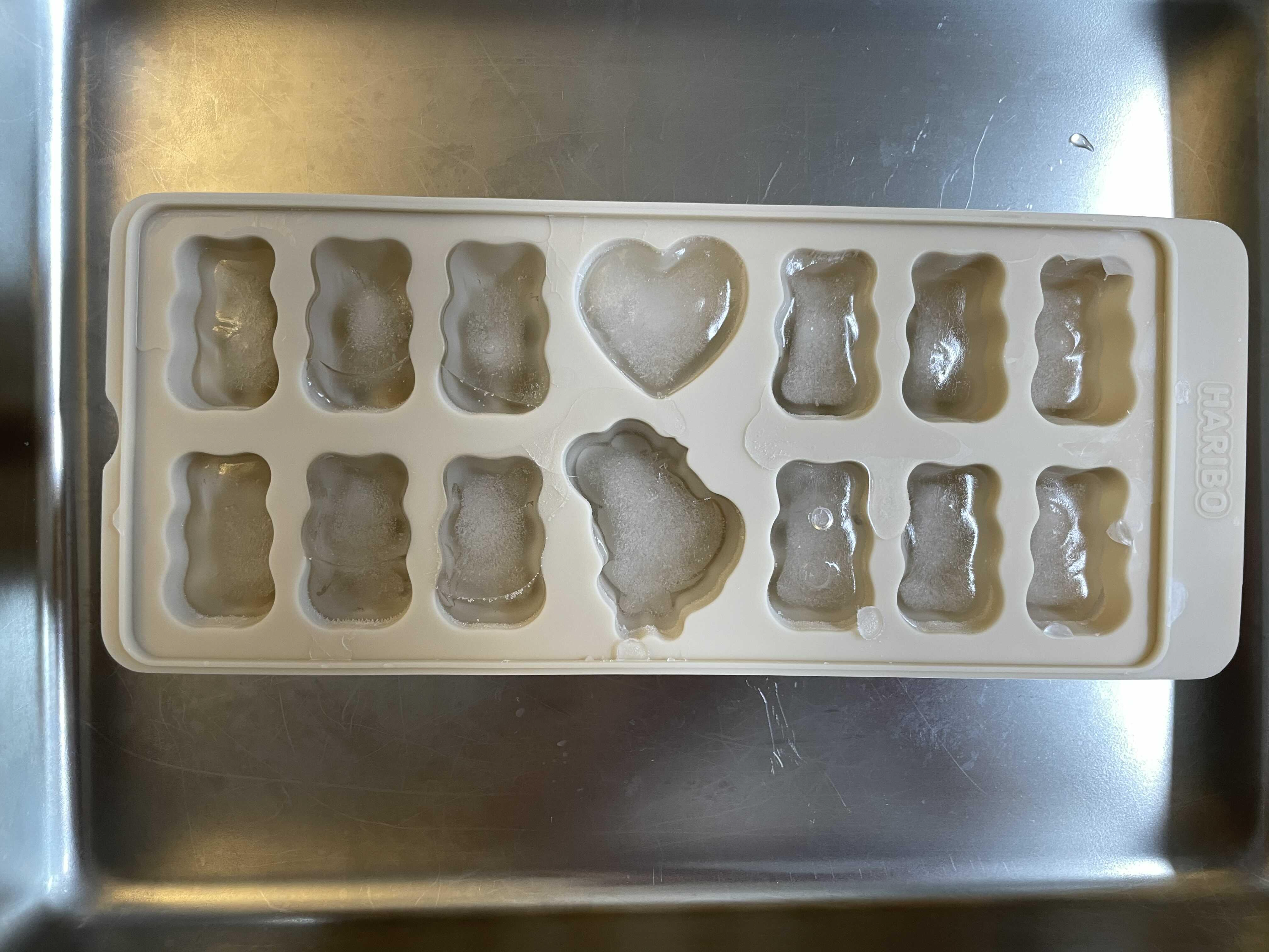 하리보 골드베렌의 젤리곰모양 그대로 젤리가 만들어지는 과정과 유사한 틀이기에 더 흥미가 갔습니다. 젤리가 아닌 얼음을 얼리는 것도 재밌고, 단순 캐릭터 굿즈를 넘어선 실 사용 물품이기에 좀 더 죄책감을 내려놓고 쉽게 다가가고 쉽게 구매하게 된 것 같습니다.