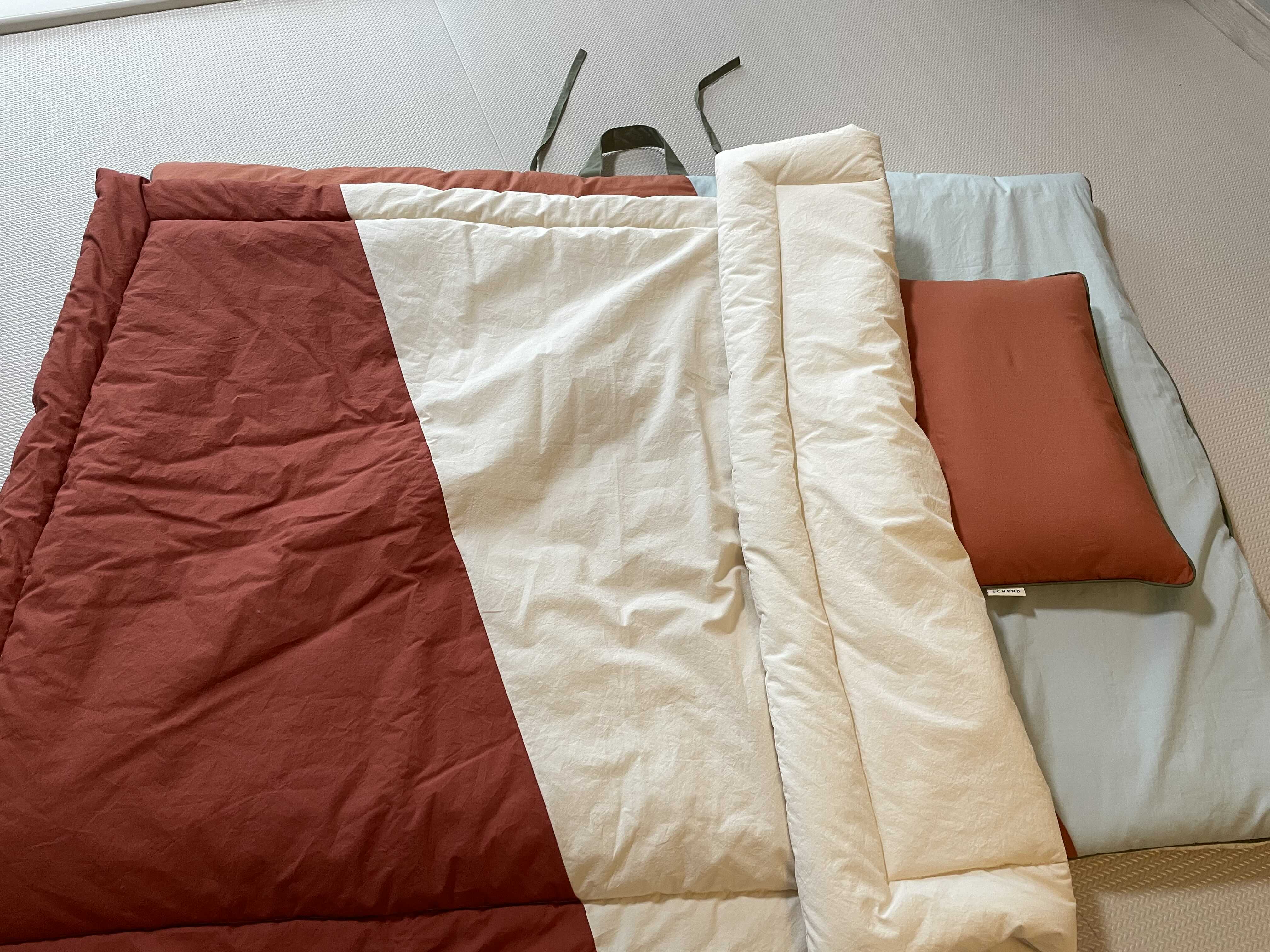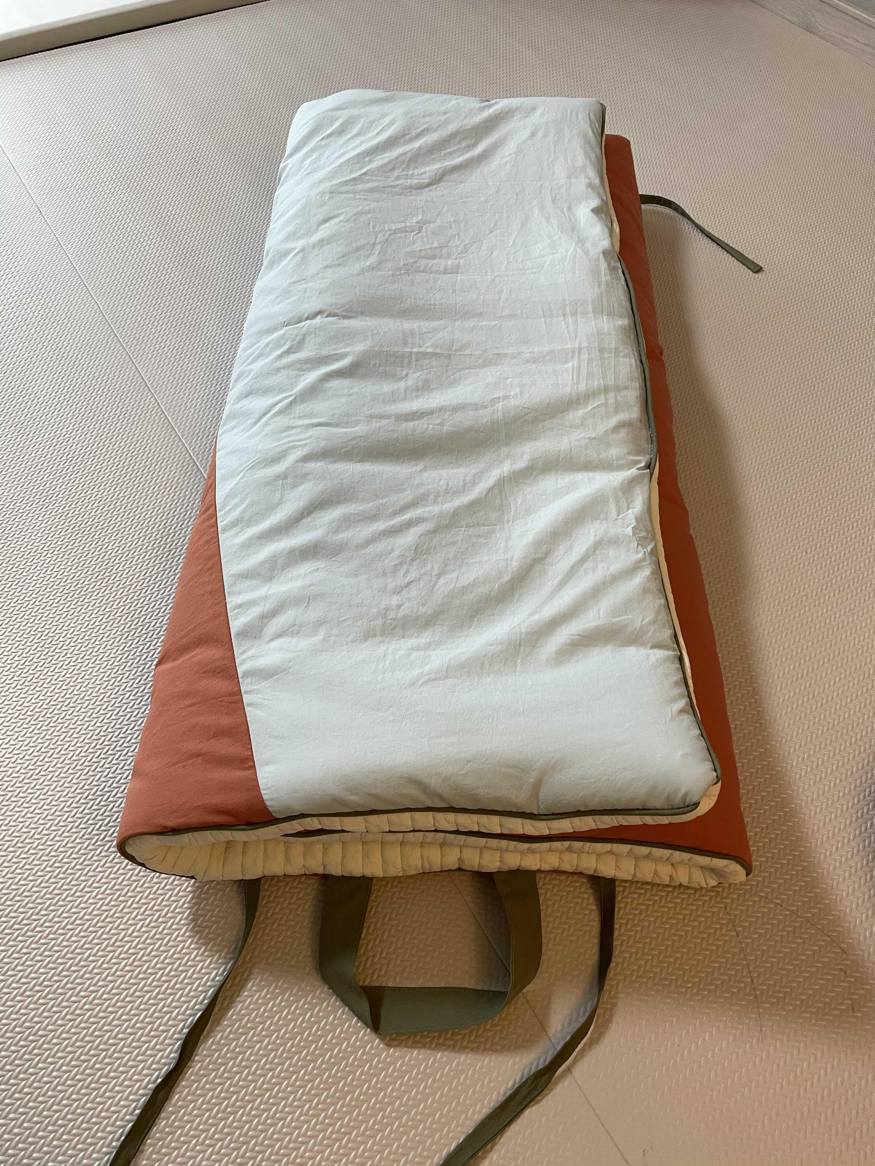 이불은 따로 낮잠이불가방에 넣어주는 것이 패드를 접었을 때 더 달 접힐 것 같습니다.