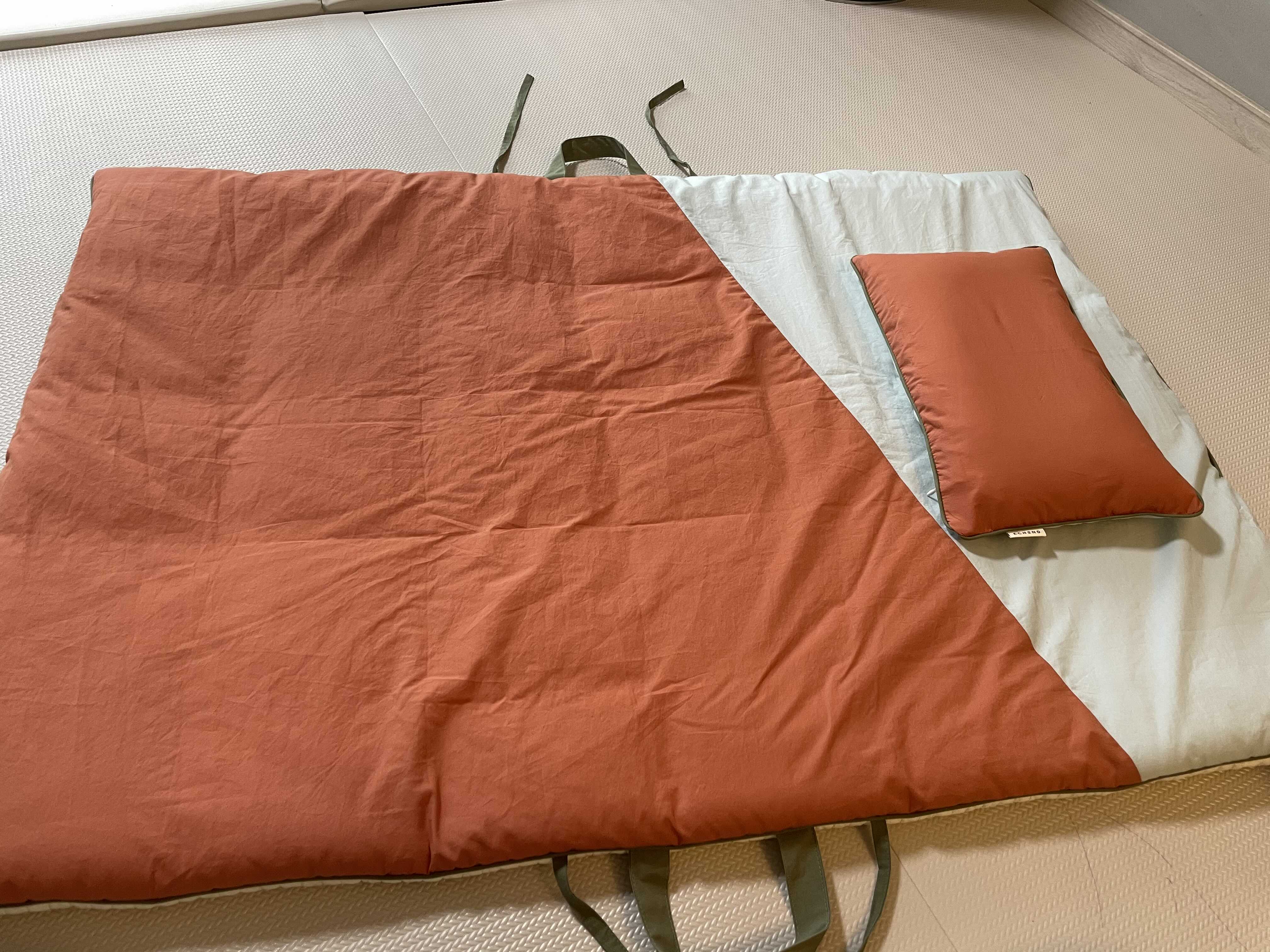 낮잠이불은 휴대가 편해야 하기에 가벼운 점은 굉장히 마음에 듭니다. 무거워도 사실 저는 상관없지만 가벼운 게 다 좋다는 생각입니다. 가벼우면 그만큼 내용물이 별로지 않을까 걱정되지만 펼쳤을 때의 퀄리티는 만족입니다.