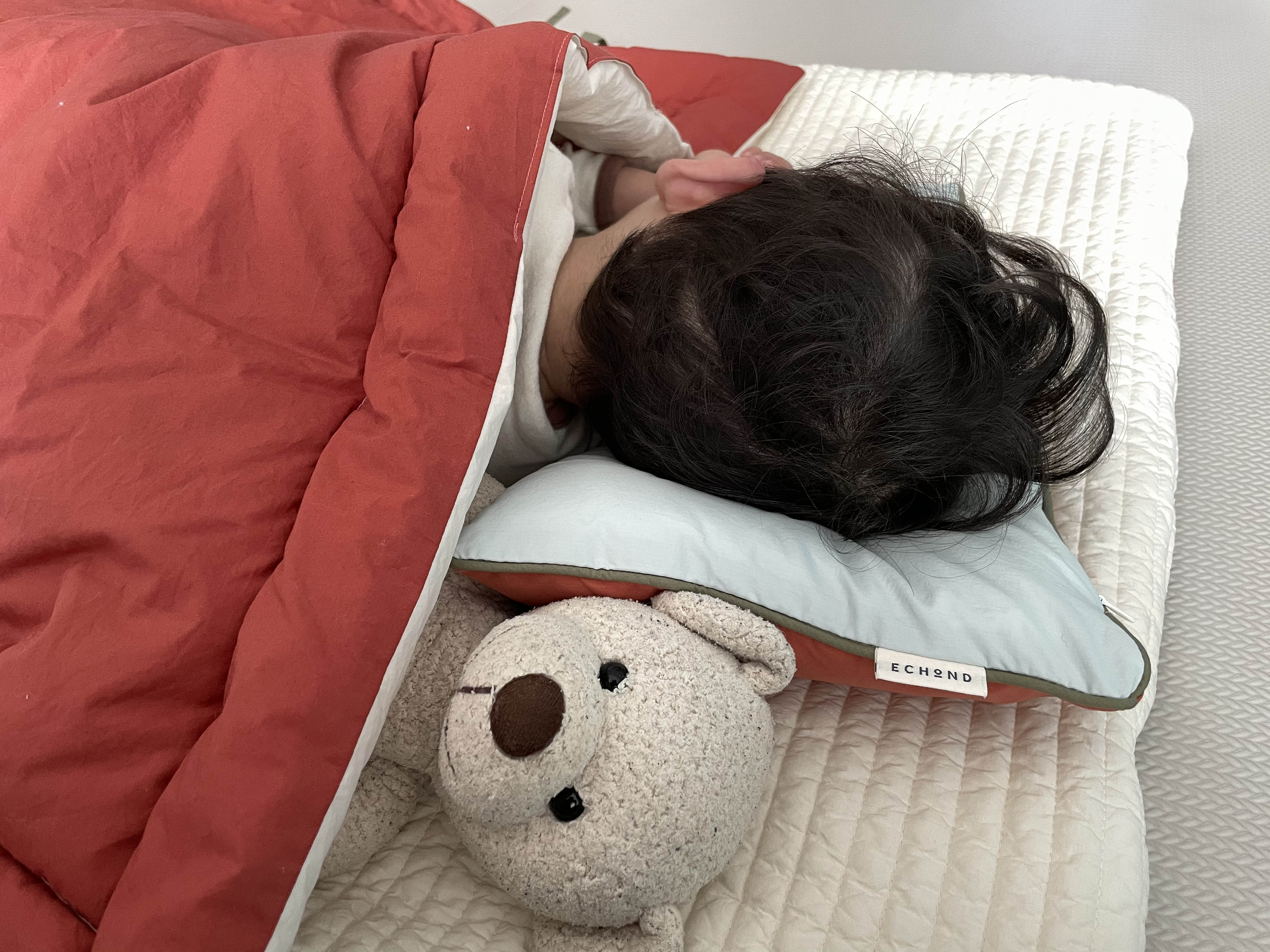 저는 아이가 어린이집에서 베개를 잘 사용해 주고 적응해 주길 바라는 마음에 집 베개도 에콘드로 바꿔줬습니다.