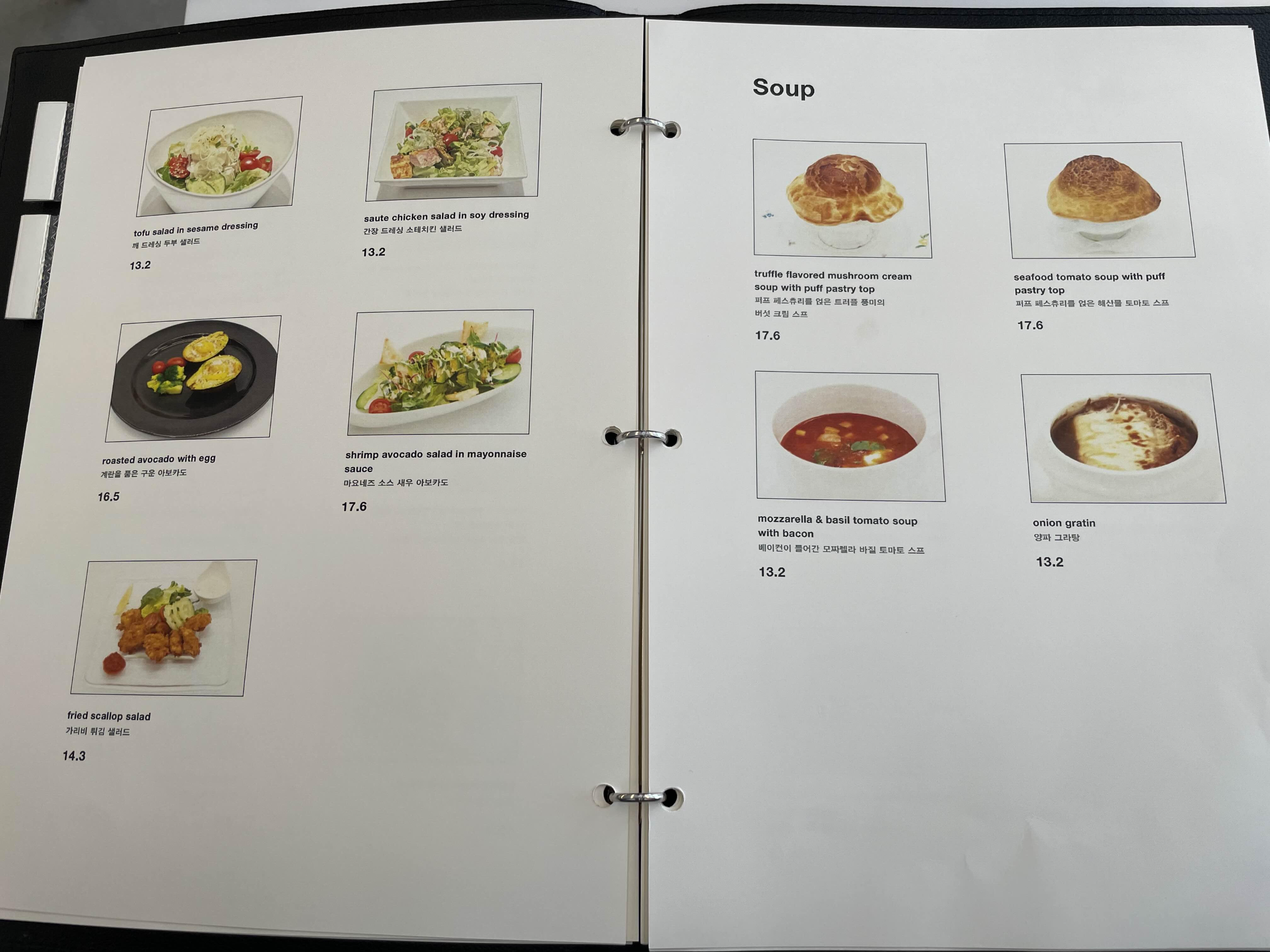 음료를 제외한 식사류 모든곳에 음식사진이 함께 나와있어 메뉴를 고를때 너무 좋았습니다.
