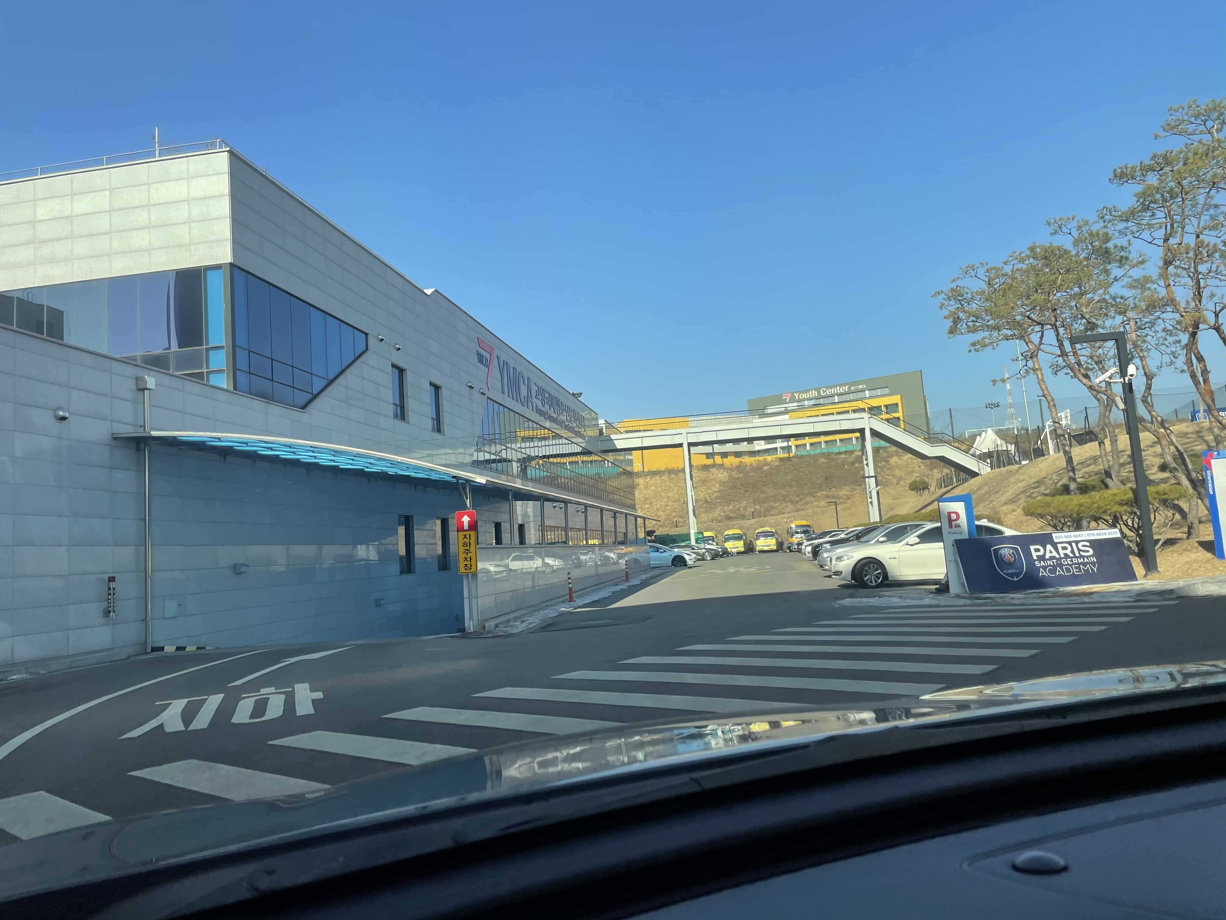 YMCA 바리게이트를 지나면 아래 첫 번째 사진과 같이 왼쪽은 지하주차장 오른쪽은 지상주차장으로 되어있습니다.