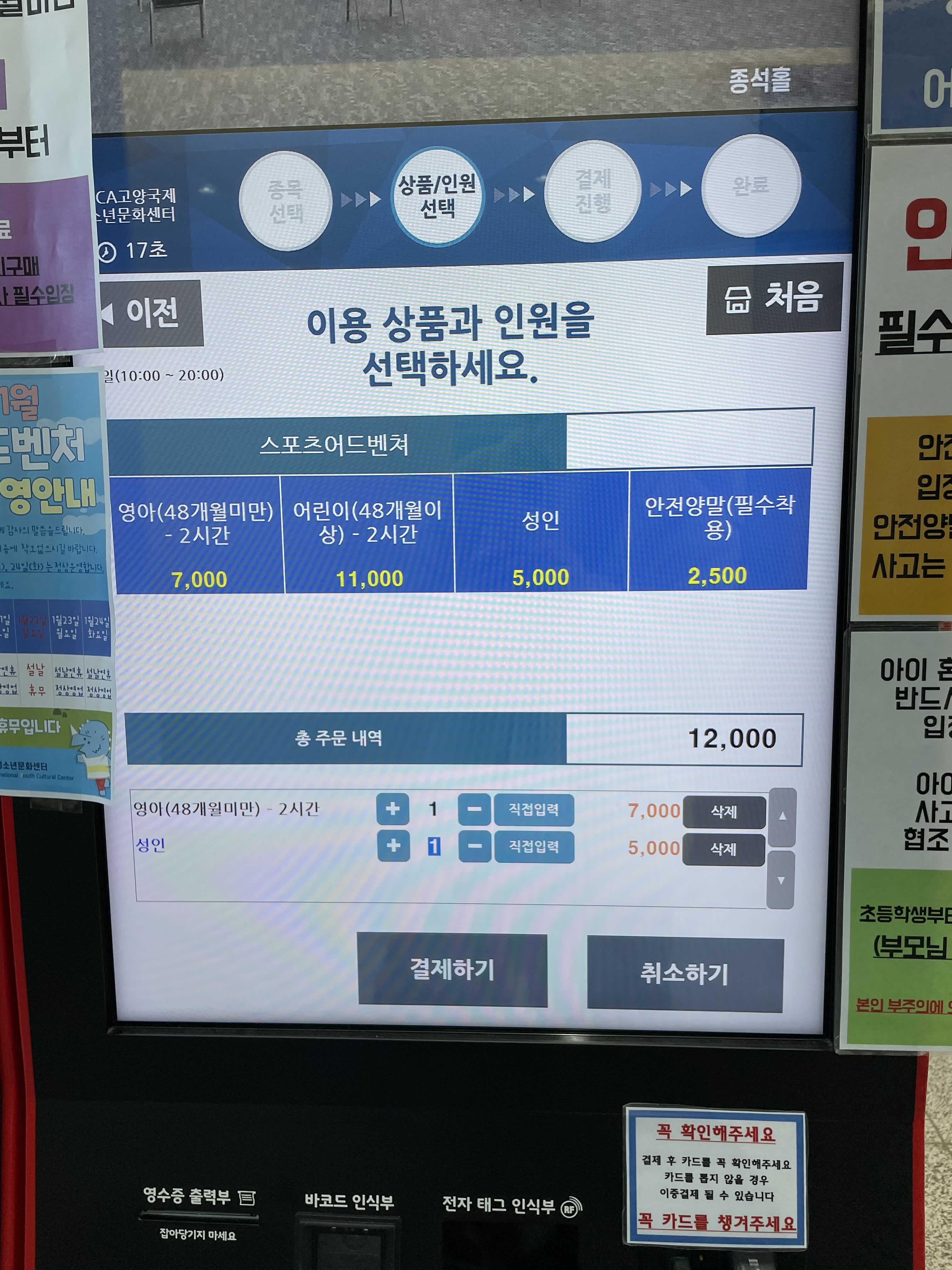 22개월 아들과 저 두 명 12,000원 결제하였습니다.