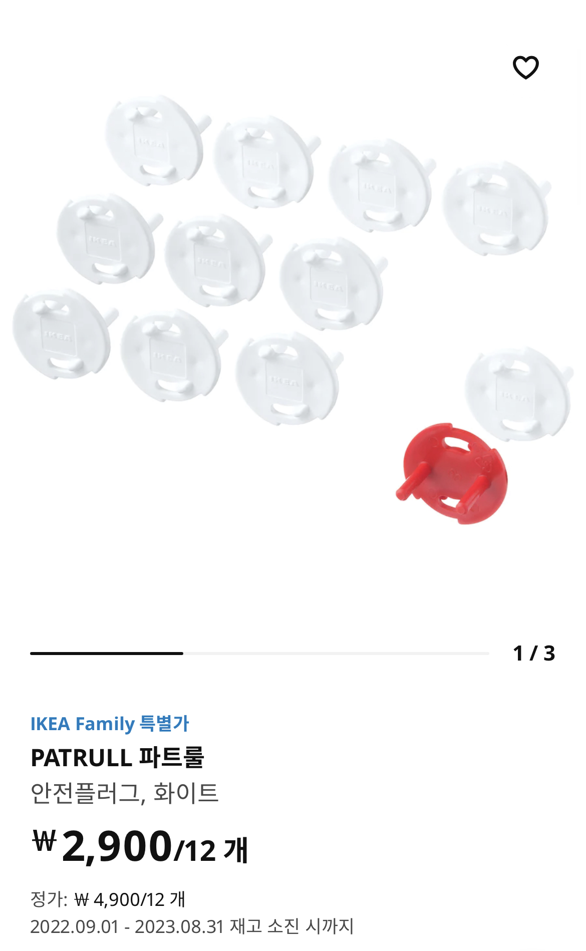 파트롤 콘센트 안전캡의 경우 이케아 패밀리에 가입되어 있다면 2천 원 할인받아 구매가 가능합니다.
